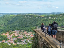 Die Schwäbische Alb liegt zwischen Stuttgart und Ulm und es gibt hier einiges zu sehen! Wir hatten eine Ferienwohnung in Münsingen, das war ein idealer Ausgangspunkt für unsere Ausflüge! Wir waren in Stuttgart im Mercedes-Museum, in Günzburg im Legoland, in Bad Urach am Wasserfall und am Blautopf in Blaubeuren. Landschaftlich gibt es von steilen Felsen bis zu grünen Wiesen und alten Burgen und Höhlen viel zu entdecken!